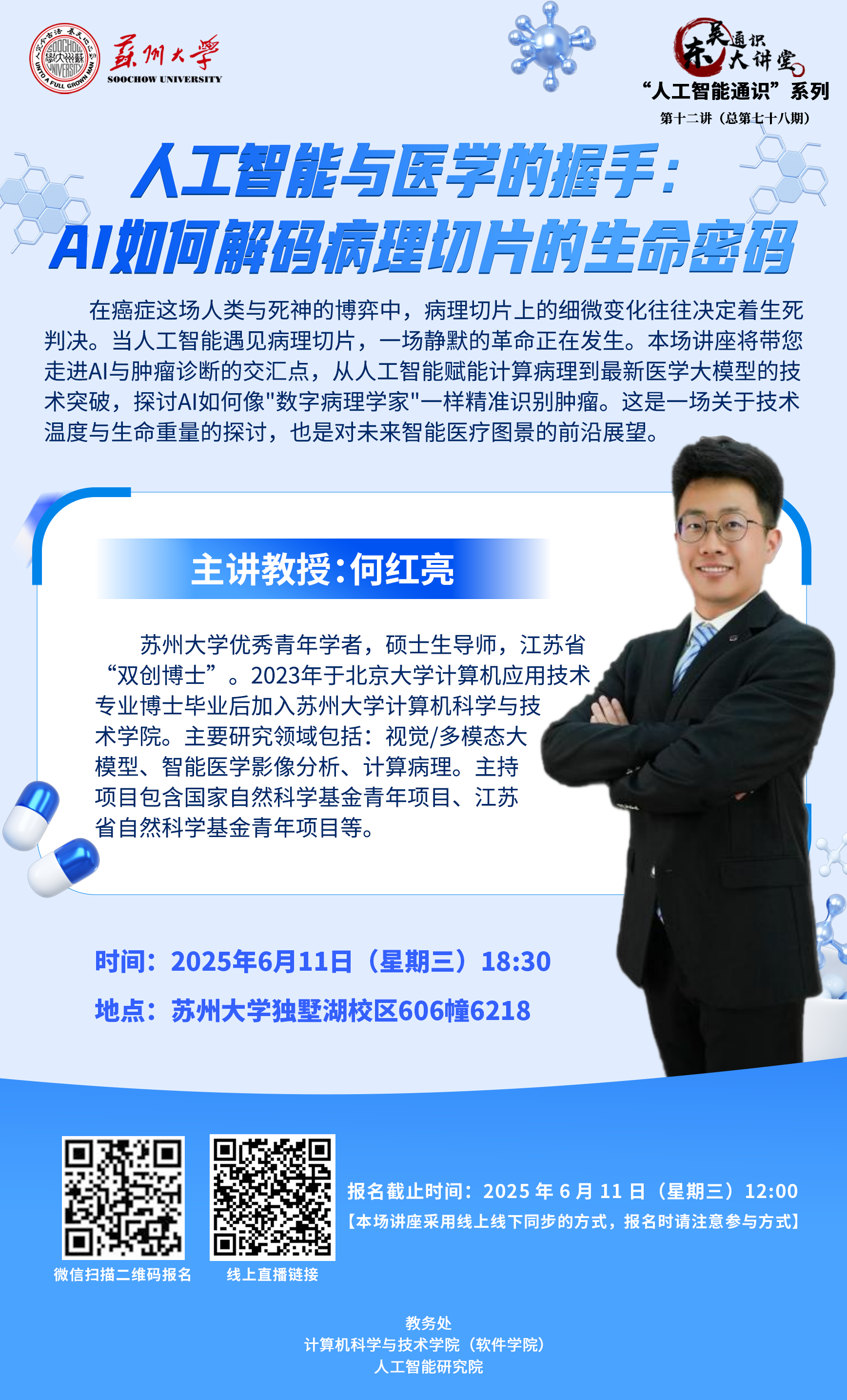 東吳通識大講堂“人工智能通識”系列 第十二講(總第七十八期):人工智能與醫學的握手:AI如何解碼病理切片的生命密碼
