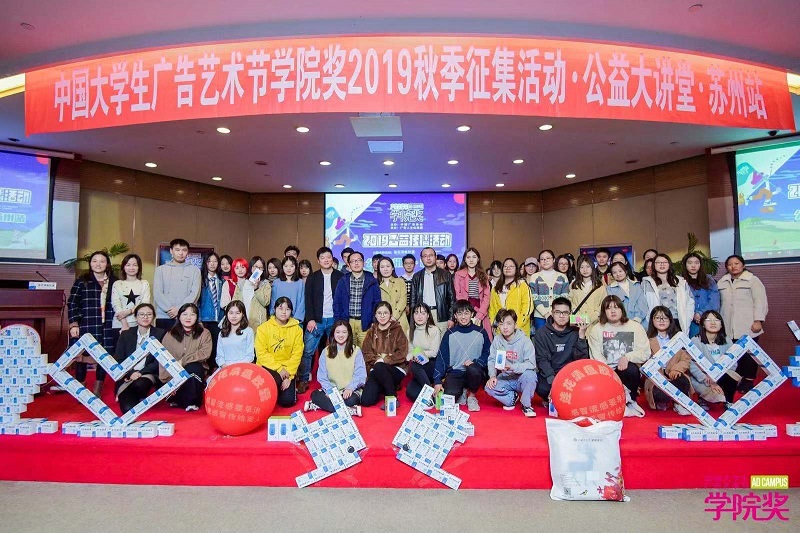 11月16日下午,中國大學生廣告藝術節學院獎2019秋季征集活動公益大講堂·蘇州站在炳麟圖書館學術報告廳舉行。中國大學生廣告藝術節學院獎組委會代表何曉影女士、劉寶軒先生,創意大師徐衛兵先生、公益命題代表以嶺藥業王旭莎女士、劉熳女士,傳媒學院相關老師以及廣告學專業的部分同學參加了此次活動。