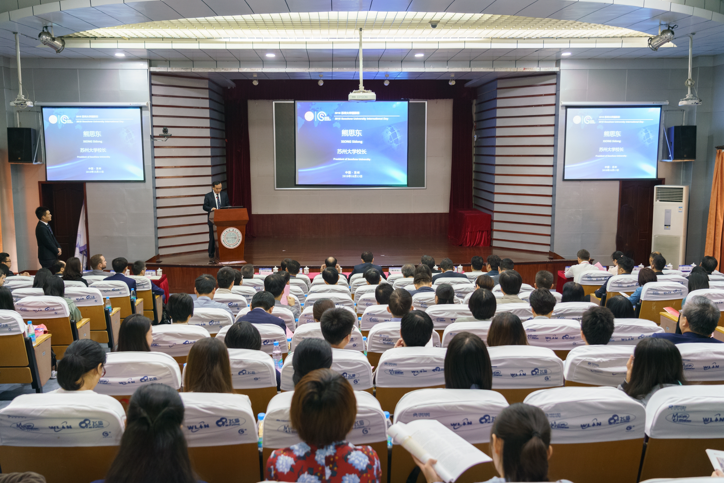 熊思東校長作了題為《新時代的蘇州大學國際化戰略》的主旨報告。他表示,國際化是大學的基本特征,是世界高等教育發展的潮流,是大學服務國家戰略的使命要求,是新時代賦予高等教育的“新職能”,也是實現大學自身改革發展的需要,已經成為現代大學的一種生存方式。當前,國際化是蘇州大學的策略和選擇,學校以國際化為改革引領,在國際標準中尋找自身位置、檢驗發展成效、明晰未來方向,更好地把握新時代的發展機遇。熊校長介紹了我校推進國際化的征程和愿景。他指出,國際化是蘇州大學與生俱來的辦學基因,一直以來學校也把國際化作為重大發展戰略,在國際合作關系、師資隊伍國際化、人才培養國際化、科學研究國際化、境外辦學等方面取得了可喜的成績。未來學校將以服務國家戰略,實現內涵式、高質量的發展為發展思路,實施四大行動:不斷開拓資源,建立渠道;理順機制,提升能力;增泵加壓,提高國際合作動力;開發項目,完善服務。學校將充分把握新時代的使命和機遇,通過實施“國際知名帶動國內一流”的國際化發展戰略,努力拓展國際化辦學空間,打造國際化辦學特色,提升國際化辦學水平,全面融入全球學術創新體系,提升國際知名度和影響力,早日建成國內一流、國際知名高水平研究型大學,最終成為人民滿意、國際認可、世界尊重的大學。