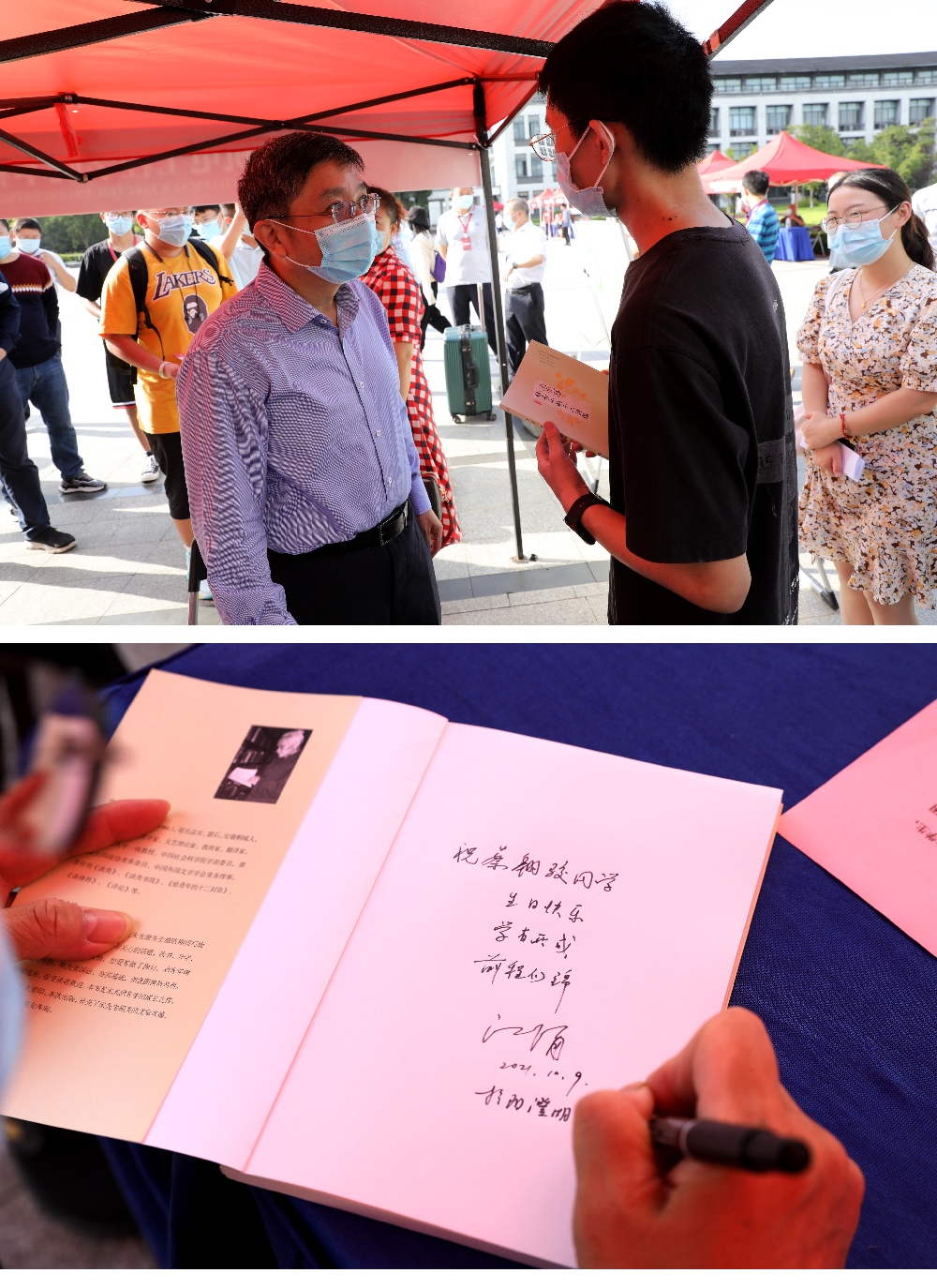機電工程學院的新生蔡翱駿同學恰逢生日,學院為他精心準備了一份暖心禮物——朱光潛先生撰寫的《給青年的十二封信》一書。江涌書記現場為蔡翱駿同學送上生日祝福,并在新書扉頁上題寫了親筆祝福。初入大學,我是不安與緊張的,但學校的安排、江書記的鼓勵讓我感受到了蘇大的人文關懷,倍感驚喜、倍受激勵。在以后的學習生活中,我會更加努力,不辜負各位老師的期待。蔡翱駿感動地說。