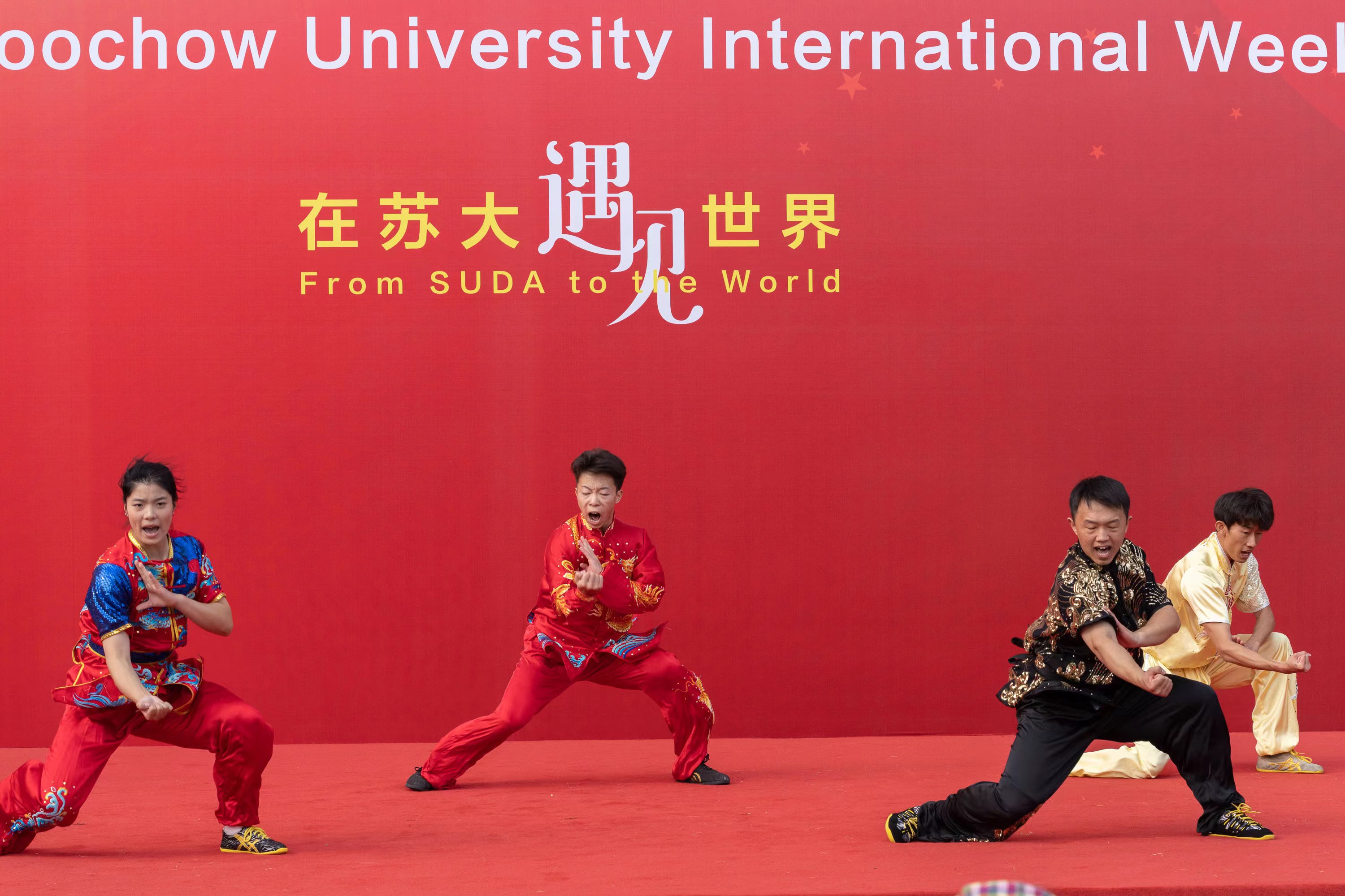 為搭建和諧互鑒、美美與共的文化交流平臺,彰顯蘇州大學的國際化特色和多元文化氣息,10月14日,2023年蘇州大學國際周活動在天賜莊校區理工大樓南草坪舉行。省教育廳對外合作與交流處副處長汝益仙,蘇州市外事辦公室處長趙崢,我校副校長李孝峰國際創新藥學院外方院長愛爾蘭皇家外科醫學院教授Brian Kirby,我校相關部門負責人以及各校外友好合作單位代表出席開幕式。開幕式由我校國際合作交流處處長何樂主持。