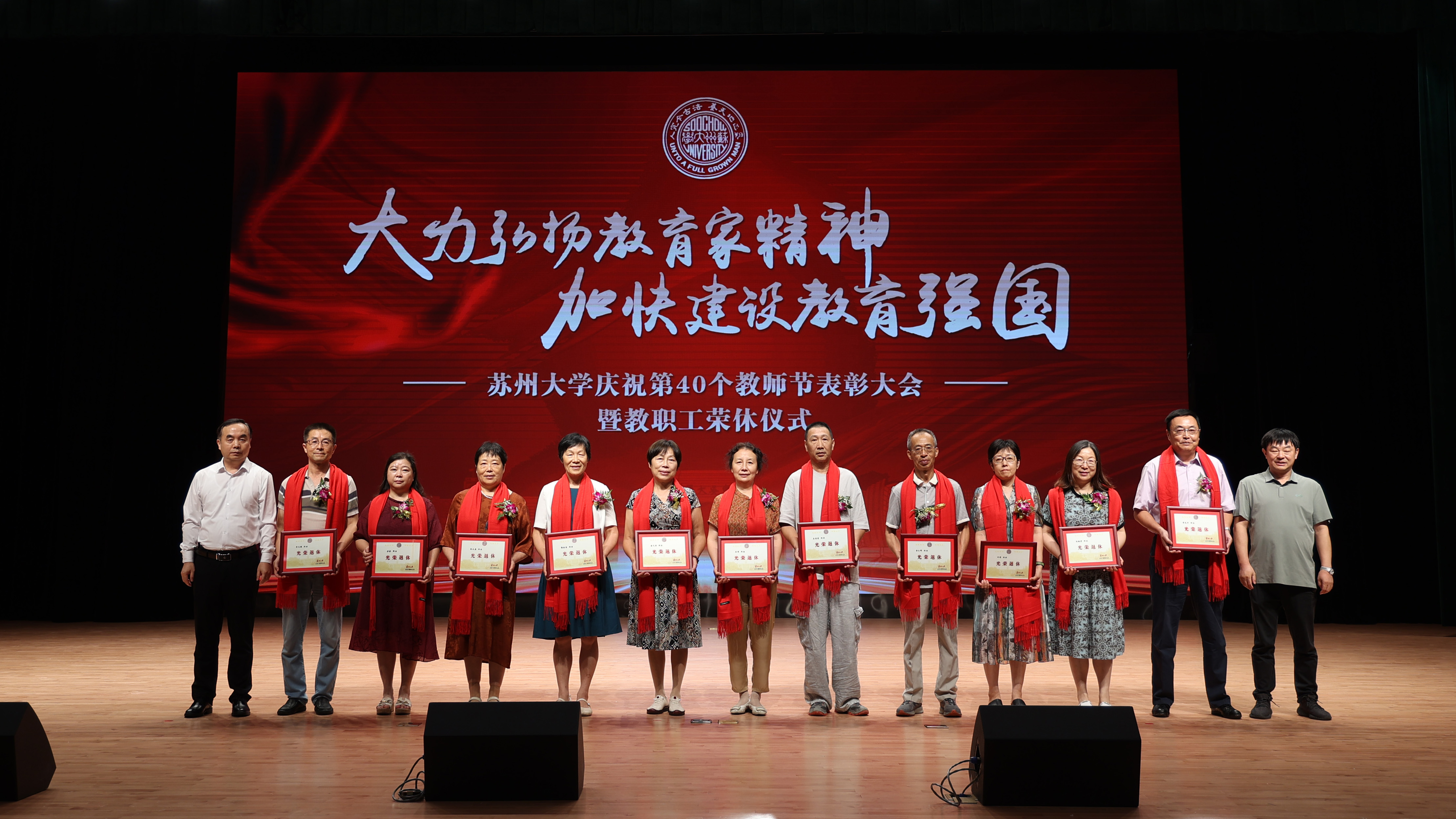 9月10日下午,蘇州大學慶祝第40個教師節表彰大會暨教職工榮休儀式在天賜莊校區存菊堂舉行。校黨委書記張曉宏,校長、中國工程院院士應漢杰,在校校領導,部分院士,“立德樹人獎教金”獲獎教師,榮休教職工以及工作滿30年的教職工代表,各學院(部)、部門、直屬單位主要負責人,教職工代表,學生代表參加會議。會議由校黨委副書記鄧敏主持。