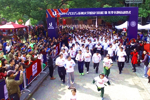 為全面貫徹落實(shí)黨的十八屆三中全會(huì)關(guān)于“強(qiáng)化體育課和課外鍛煉,促進(jìn)青少年身心健康、體魄強(qiáng)健”的精神,聯(lián)絡(luò)、凝聚校友,營(yíng)造和諧、向上的校園文化環(huán)境,擴(kuò)大蘇州大學(xué)的知名度和影響力,11月14日中午,U-run2015蘇州大學(xué)校園馬拉松起跑儀式暨冬季長(zhǎng)跑啟動(dòng)儀式在本部正式拉開序幕。