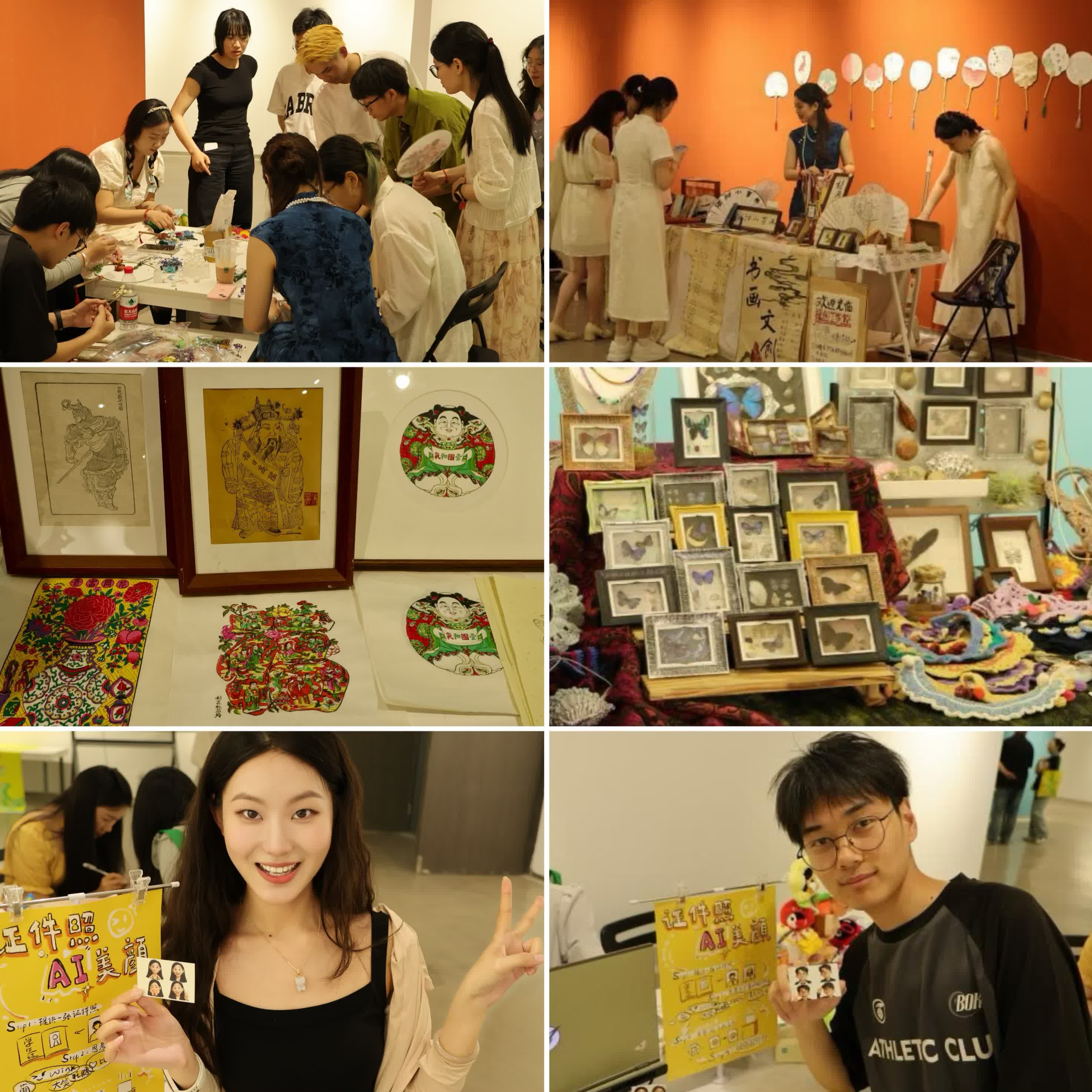 開幕式當天,美術館內還設置了美育藝術街市集2.0桃花塢木版年畫、蘇繡、書法等中華傳藝術體驗活動,以及證件照AI美顏等人工智能藝術創作活動,讓師生通過沉浸式互動體驗中華傳統文化之美,現場氣氛熱烈。