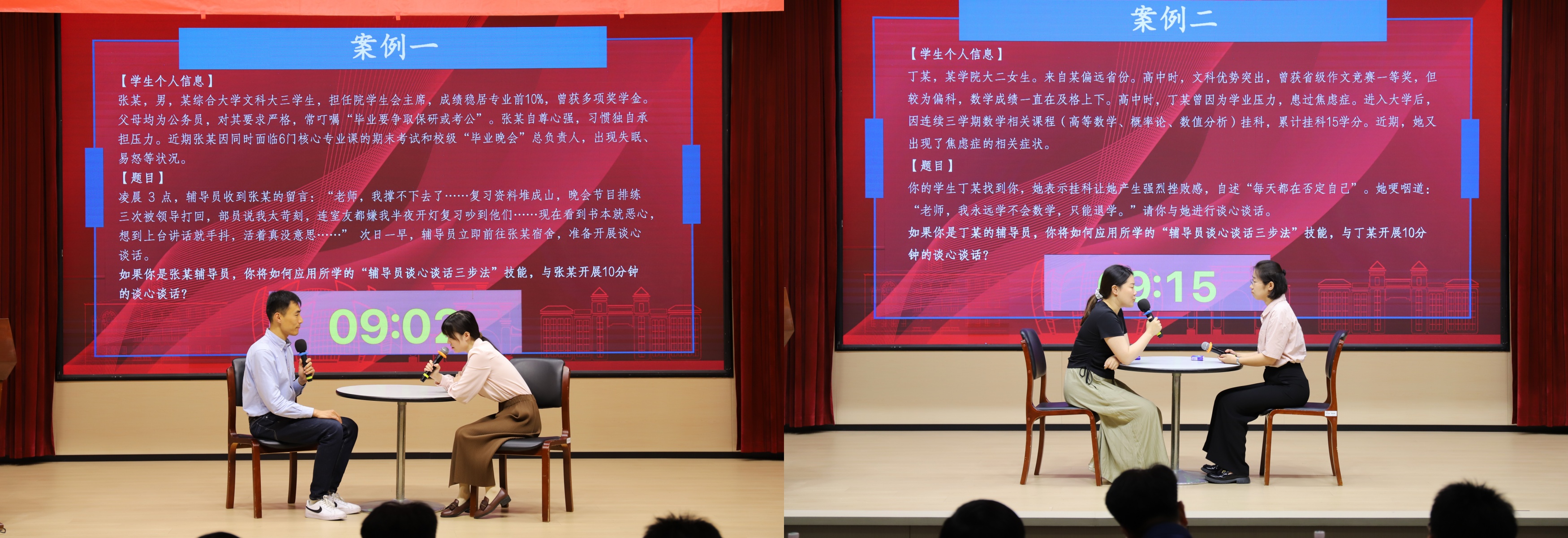 材料與化學化工學部余嘉斌、教育學院蘇興亞、機電工程學院呂暢達、未來科學與工程學院許夢琦作為優秀學員代表,兩兩搭檔展開“三步法”現場展示。期間,雙方精準揣摩學生心理,通過敏銳的觀察與深入的交流,充分彰顯了對學生成長規律的把握以及教育引導能力。